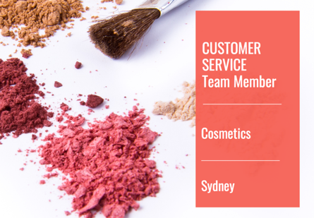 Great opportunity for a makeup artist/retail professional to transition to a headquarters role! Must have impeccable customer service & communication skills. Growing, well-known Australian name in beauty. CBD location. Click here for details: https://www.seek.com.au/job/36754871